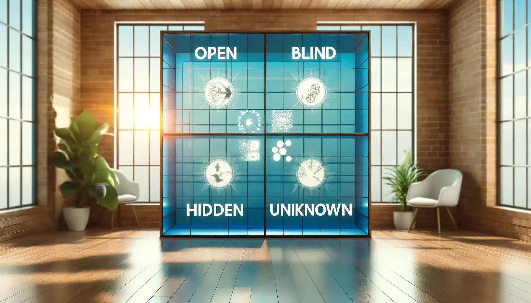 חלון ג’והרי משורטט בסכמה בעלת ארבעה חלקים, הנוצרים מהצלבה של דברים הידועים/לא ידועים לי, יחד עם דברים הידועים/לא ידועים לאחרים: